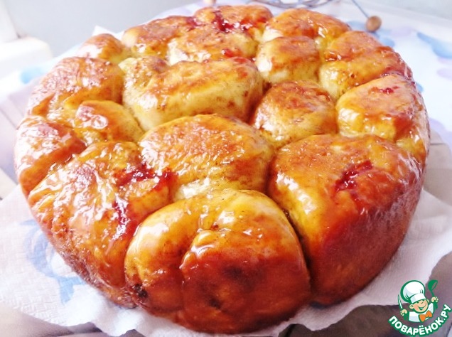 На сайте уже есть несколько рецептов этого хлеба, в том числе сладкого. Я предлагаю рецепт тыквенного хлеба. Его я нашла в интернете, внесла небольшие изменения и получилась такая большая разборная булочка в капельками джема внутри, а сверху очень вкусная карамелька. Сладкий обезьяний хлеб легко приготовить в мультиварке, структура получается мягкая, воздушная, мякиш слегка влажный. Меня сложно удивить дрожжевой выпечкой, но тут я была в полном восторге, и отламывая по кусочку, сама не заметила как съела половину. Заходите посмотрите, может и вам приглянется этот рецепт.