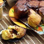 Извлекаем наш сладкий хлеб с помощью чаши для варки на пару. Вся карамель при выпечки стекла на дно, а когда перевернули, то она оказалась сверху изделия.