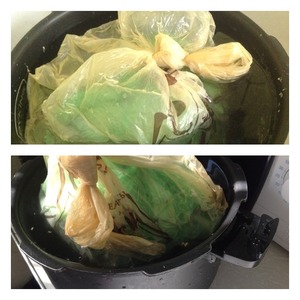 Тесто положить в пакет и опустить в кастрюлю с ледяной водой. Через 20-30 мин тесто всплывает на поверхность, оно готово