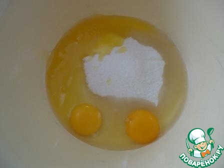 Тесто выложить в форму, сверху посыпать орехами. Я их слегка измельчила в блендере, получились и крупные и помельче.