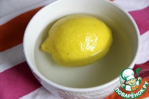 Лимон обдать кипятком и оставить на несколько минут ( таким образом мы получим много сока и не оч. острую цедру)