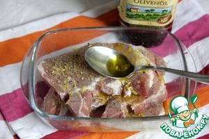 Каждый слой мяса "промаслить" ложкой оливкового масла