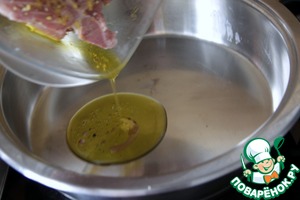 Раскалить сковороду! Вылить на неё масло-маринад -