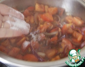 Добавить томаты, нарезанные кубиком, тушить, помешивая пару минут. Добавить выдавленный лимоный сок,