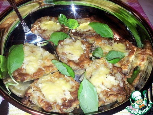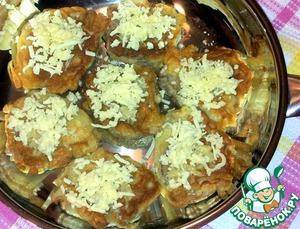 На чеснок насыпать тёртый сыр. Сковороду закрыть крышкой и поставить на медленный огонь минут на 5 - 7. А ещё лучше поставить сковороду в духовку под гриль на это же время.