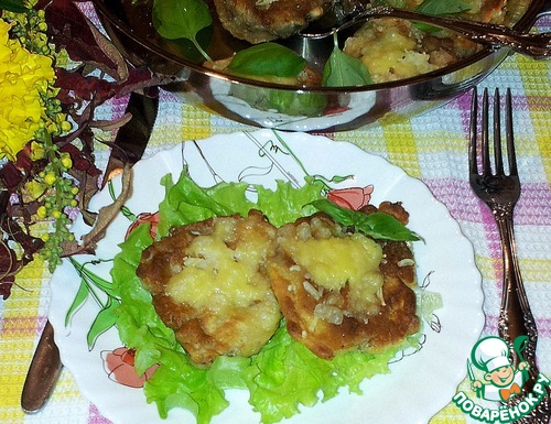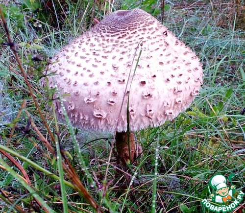 Вышла на работу пораньше, захотелось прогуляться, подышать свежим утренним воздухом. Тишина. Иду и смотрю по сторонам, вдруг что - то интересное увижу. Бывает лиса пробежит или зайцы. Птицы поют на разные голоса. Хотела цветочков в вазочку сорвать и вижу на пригорке зонтик красуется. Интересно, когда это он тут вырос и никто его не сорвал. Хотела сразу же забрать, но на работу его нести не хотелось... Иду с работы и думаю, ждёт меня зонтик или уже нет. Ооо, стоит красавчик и даже подрос. Редко встречается этот зонтик... В этот же день поехали в лес с собачками. Только зашла и вижу мой зонтик стоит. Оба убрала в холодильник. На следующий день опять поехали в лес и ещё четыре зонтика нашла... Ничего выдумывать не стала, а приготовила их в кляре с чесноком под сыром... Не бойтесь зонтик есть, если увидите срежьте и попробуйте. Кто не знает, что ест, не поймёт мясо это или рыба...