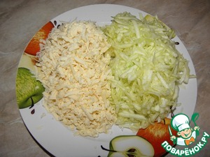 Сыр и кабачки натереть на крупной терке. Сок у кабачков отжать.
