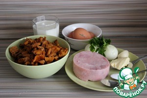 Ингредиенты для «Запеканка с грибами и ветчиной в сковороде»: