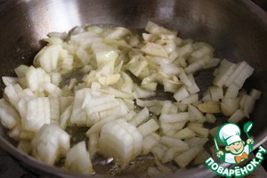 В сковороде распускаю сливочное масло. Кидаю мелко нарезанный лук и чеснок. Обжариваю 2 минуты.