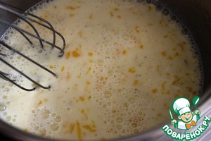 В глубокую миску вливаю сливки, разбиваю яйца, добавляю соль и черный молотый перец. Взбиваю венчиком.