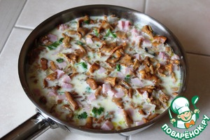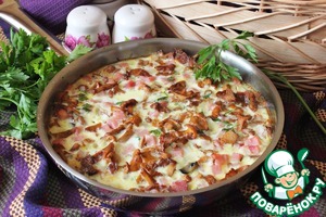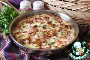 Рецепт «Запеканка с грибами и ветчиной в сковороде»: