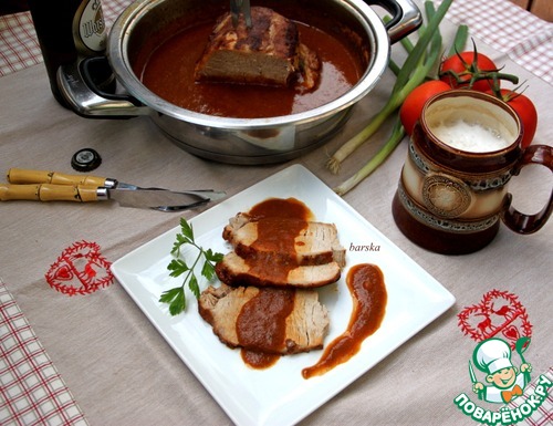 Schweinebraten. Этот рецепт в моей подборке "сковородочных путешествий" представляет старушку-Европу, а в частности - Германию. Пожалуй, это был самый сложный конкурсный выбор для меня! Как рассказать вам в одном рецепте о столь знакомом мне, любимом и столь же необъятном? Как сжать до предельно простого, вкусного, ароматного и сытно-гостепреимного? Мысленно я прогулялась по всем-всем фирменным немецким местам, в которых мы побывали с поварятами мария ольховская, Eva Grimm, skyfuntik и остановилась... на простой и вкусной классике жанра - Schweinebraten. Вариаций этого рецепта - великое множество! Но... классика из обычных ингредиентов - никогда не стареет. Для Светика мисс и её Сергея, в память о юности, молодости и... службе в ГДР!