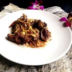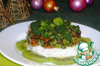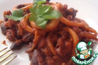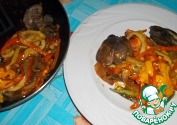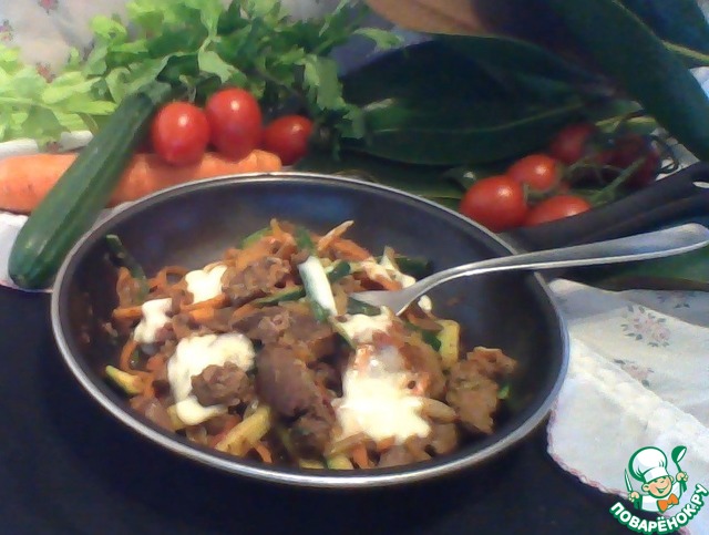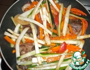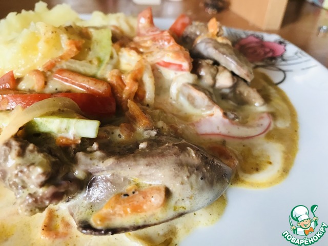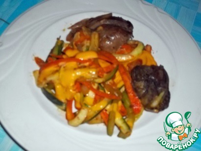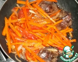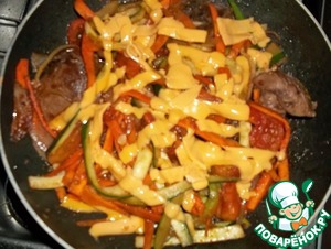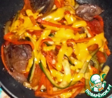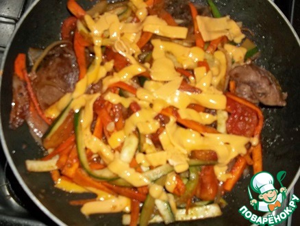 Овощи с куриной печенью и плавленым сыром