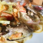 Еще через пару минут добавить цуккини, карри, посолить, поперчить по вкусу, перемешать. Подержать на огне не более 3-4 минут.