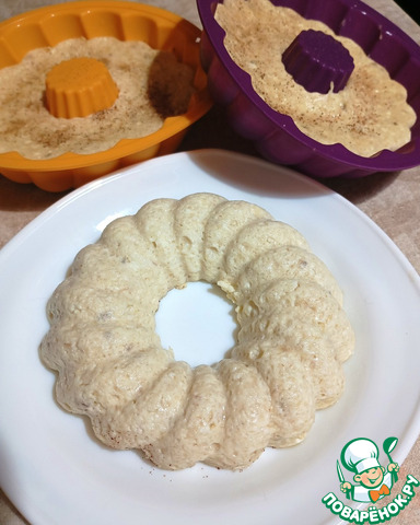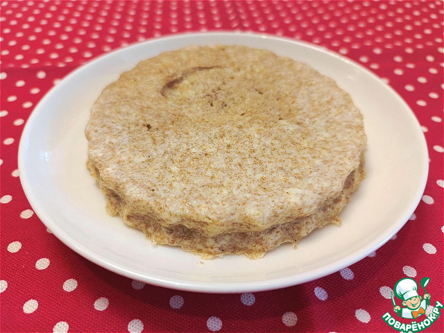 Готовую смесь выливаем в форму, которую можно использовать в микроволновке. Микроволновку включаем на полную мощность на 3 минуты, затем 2 мин. "отдыха", но емкость со смесью не вынимаем!