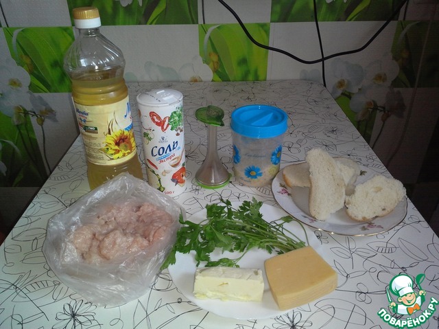 Ингредиенты для «Куриные котлеты с сыром и зеленью»: