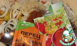 Добавляем по 1 ст. л чёрного и красного-сладкого перца