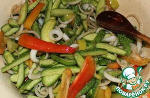 Затем к огурчикам добавляем перец...