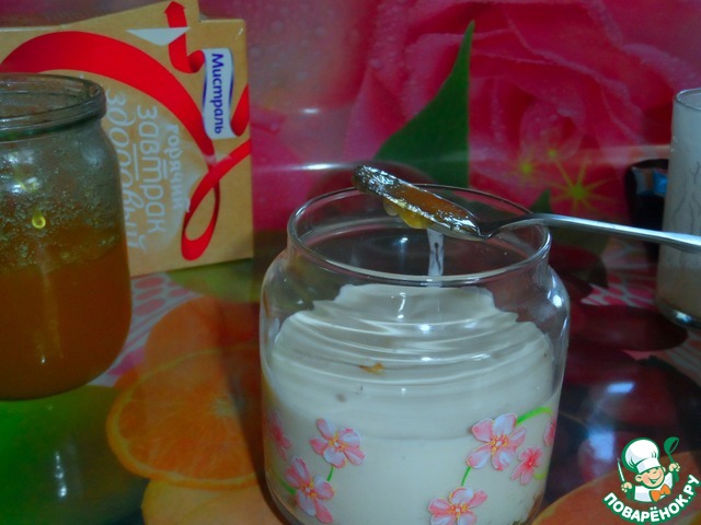 К хлопьям добавляем ряженку (йогурт) и мед.