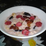 Ставим в микроволновку на 1 минуту, чтобы хлопья немного распарились и увеличились. Затем добавляем фрукты (у меня арбуз) или любимые ягоды. Можно добавлять яблоки и корицу, вишню и шоколад, все что Вы любите)) Для тех, кто любит овсянку в холодном виде, можно ставить на ночь в холодильник, утром Вас будет ждать готовый полноценный завтрак! В холодильнике можно хранить до 2-х дней.