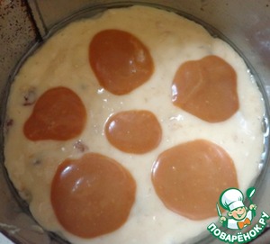 Выкладываем тесто в смазанную растительным маслом форму и распределяем карамельный соус. Отправляем в разогретую духовку и выпекаем при температуре 180 градусов.