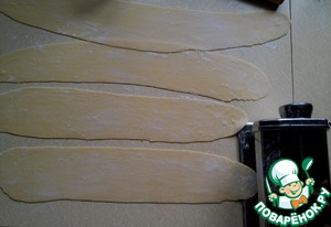 нарежьте рулет на кусочки шириной 5-7 мм;