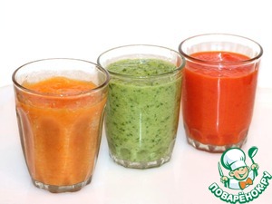 При помощи блендера измельчаем перец. Получается 3 стакана разноцветного пюре по 200 мл в каждом.