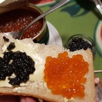 Даже не знаю, сделала с черным хлебом и чеснок как-то поддал во вкус икры горечь,т.к. оба вкуса очень яркие (икра и чеснок), с маслом все же вкуснее, чем с майонезом, делала с красной икрой, черной у нас давно не продают уже спасибо за рецепт!