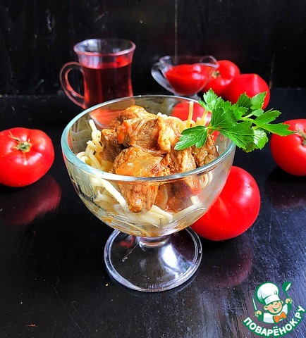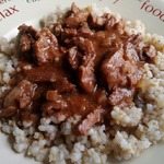 Очень вкусный beef strоganoff style. Я бы добавил грибов, белого вина,паприку и петрушку.