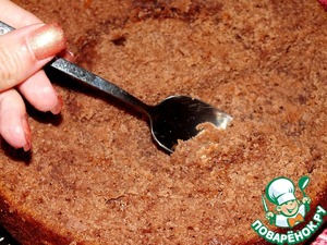 Затем аккуратно ложкой извлекаем мякиш, оставляя только "каркас" коржа примерно по 1 см. Из мякиша мы будем делать трюфельки