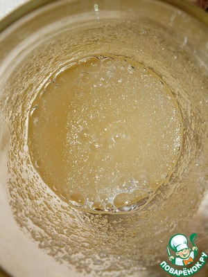 Желатин зальем водой, у меня желатин быстродействующий. Если у вас обычный желатин, то замочите его в воде заранее. В рецепте было указано 20 гр желатина, я взяла наполовину меньше, с 10 гр отлично все застыло.