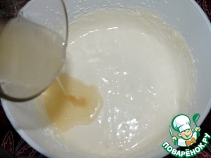 Всыпаем сахар и пакетик ванилина, продолжаем взбивать до пышной белой массы
