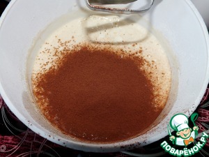 В тесто просеиваем какао (по рецепту было написано 4 ст. л., для тех кто любит пошоколаднее можно положить 4 ложки) и еще раз взбиваем