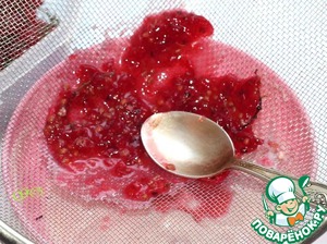 Берем ягоду и перетираем ее через сито. Немного ягоды оставить для украшения торта.