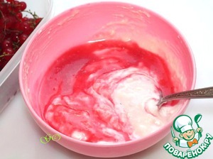 Половину ягодной смеси добавляем в сметану и перемешиваем. Сахар вы добавляете по вкусу.
