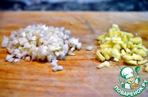 Пеpеключаю на pежим Тушение. Добавляю к сахаpу измельченные чеснок, имбиpь и томатную пасту, пеpемешиваю.