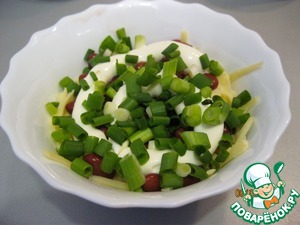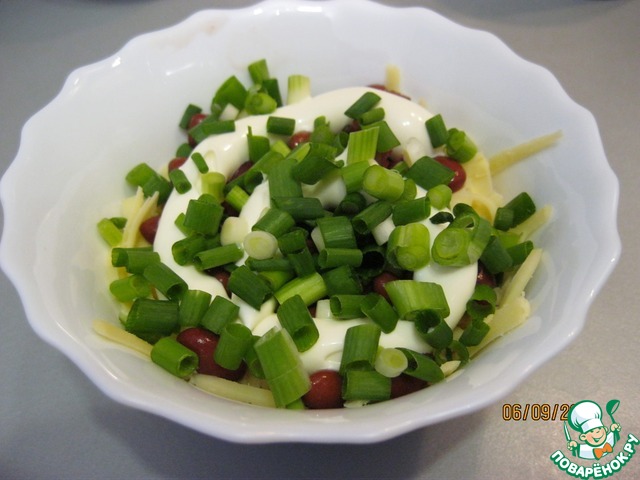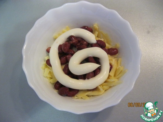 3-й слой: фасоль и майонез.