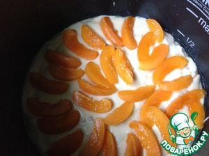 Сверху выложить абрикосы, порезанные соломкой. Выпечка 60 мин