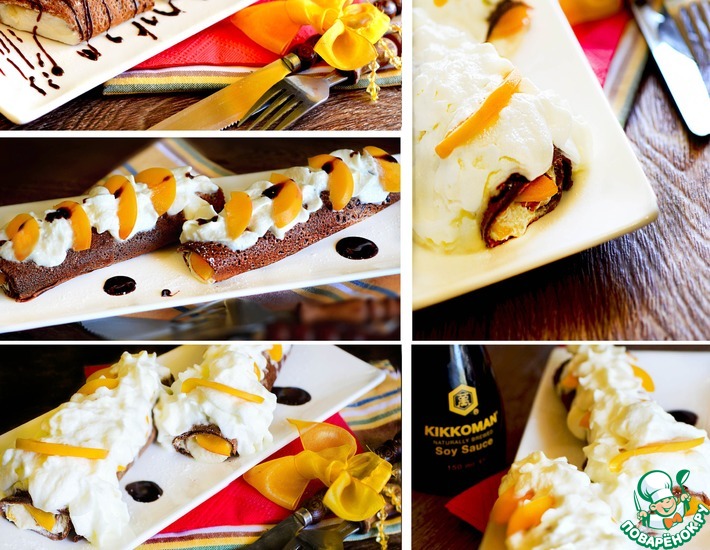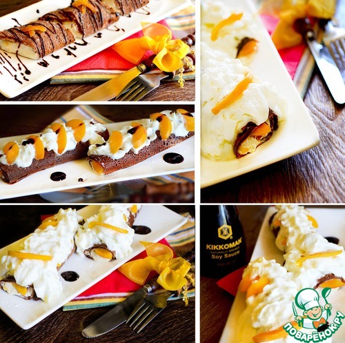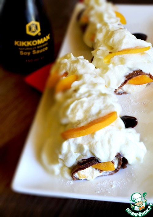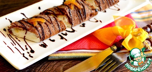 Рецепт «Шоколадные блины с персиковым кремом»: