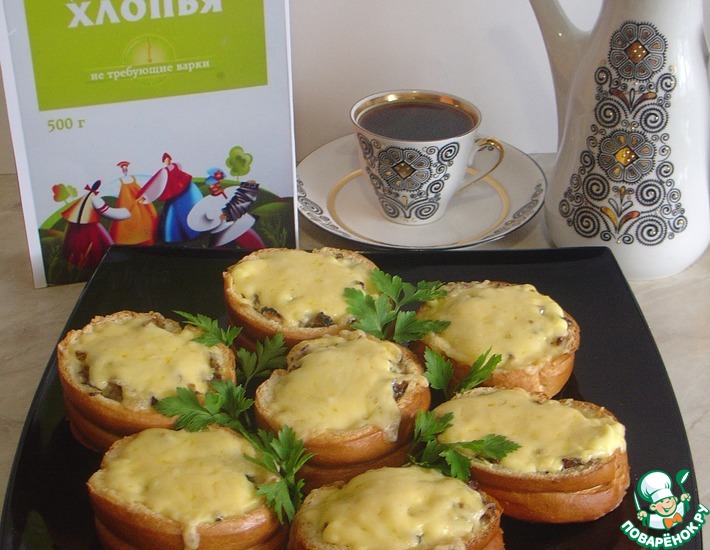 В каждом кусочке сделать углубление, просто примять мякиш руками или скалкой.