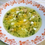 Балует осень в нашей местности теплыми деньками, но мы не теряем бдительности и готовимся к неминуемым дождям и холодам загодя. В эту пору я всегда храню в морозилке замороженный бульон, чтобы можно было быстро согреть сына, который загулялся после школы и, почти наверняка, промочил ноги. Просто бульон пить не интересно, поэтому я ищу всевозможные варианты его подачи. Вот такой я нашла в одном из кулинарных журналов.