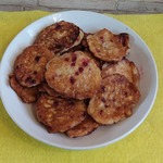 Для этих оладьев можно использовать изюм, но я рекомендую лучше использовать сущеную бруснику. Сочетание немного кисленькой брусники и тыквы прекрасно. Бруснику моем, заливаем кипятком на пару минут, чтобы ягода стала мягкой.