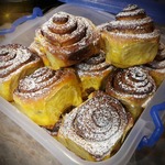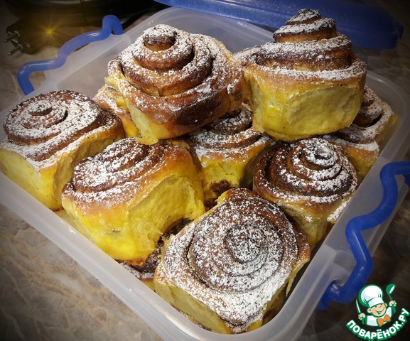 Когда все формы будут заполнены рулетиками, отправляем в теплое место на расстойку на 20 мину. Смазываем булочки желтком ( я разбавила желток 1 столовой ложкой воды) и выпекаем в предварительно разогретой духовке до 180 градусов 30 минут. Подавать булочки в теплом виде на завтрак )))