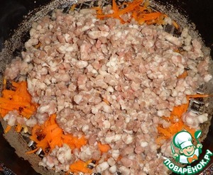 Затем добавляем мясной фарш, мускатный орех и соль по вкусу. Тушим 7-10 минут.