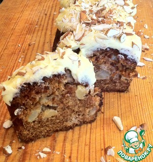 Покрываем им остывший пирог. теплый пирог смазывать кремом не нужно, иначе крем поплывёт. Посыпаем рубленым миндалем