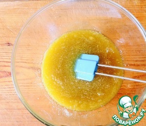 Отдельно смешиваем яйца, 2 ст. л. меда, сахар и оливковое масло. Миксер не используем.