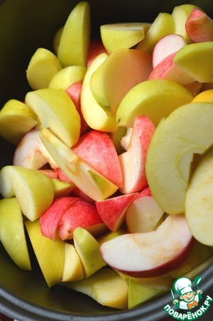 Яблоки ставим в мультиварку на режим «выпечка», на 40 минут. Каждые 10 минут заглядываем и перемешиваем массу