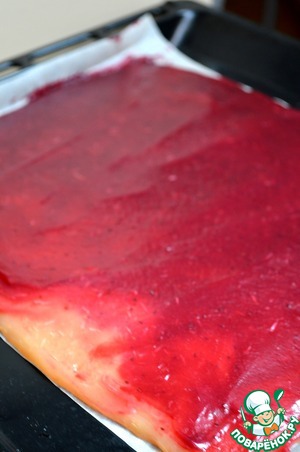 Теперь нам нужен пергамент для выпечки. Выкладываем фруктовое пюре