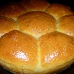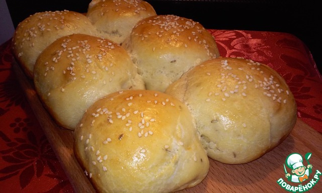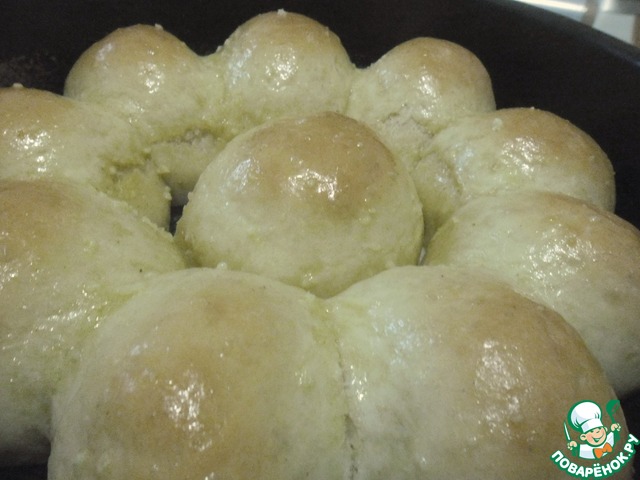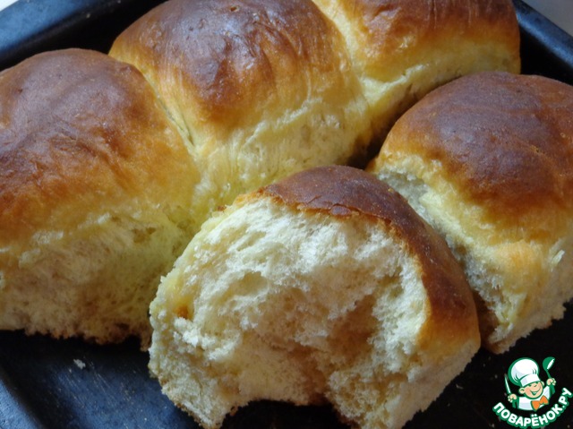 Примечание: Если вы хотите сладкие булочки, количество сахара увеличьте до 3,5 ст. л., а соли - сократите до 1 ч. л. Готовые булочки смажьте сливочным маслом.