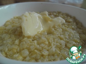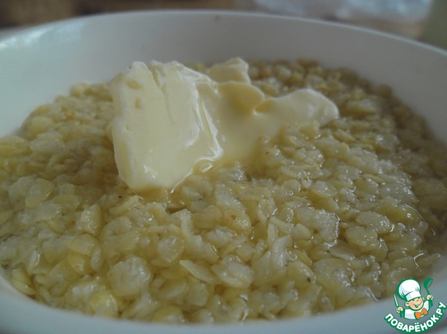 Необходимо залить их кипятком, добавить 15 г сливочного масла, соль и оставить до набухания.